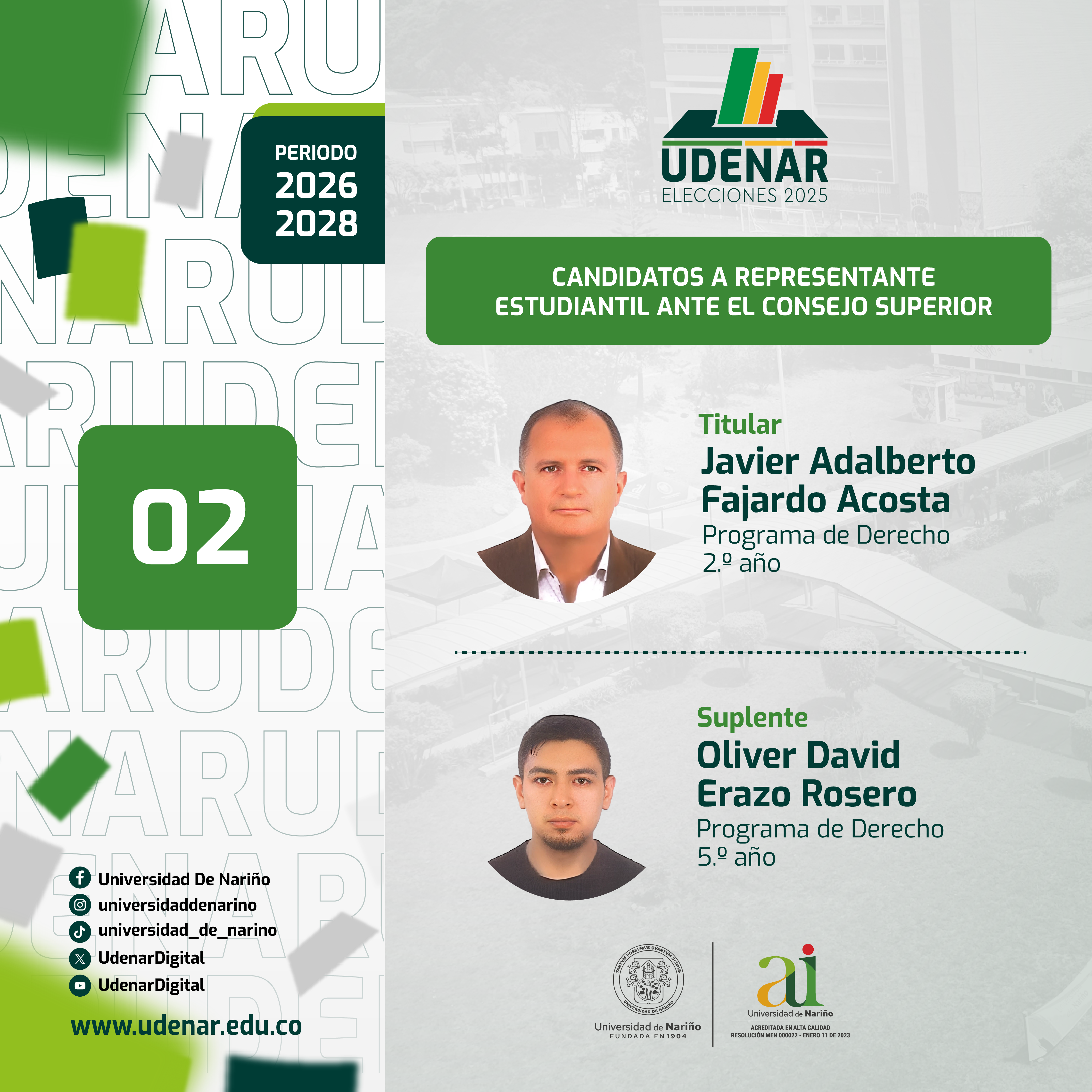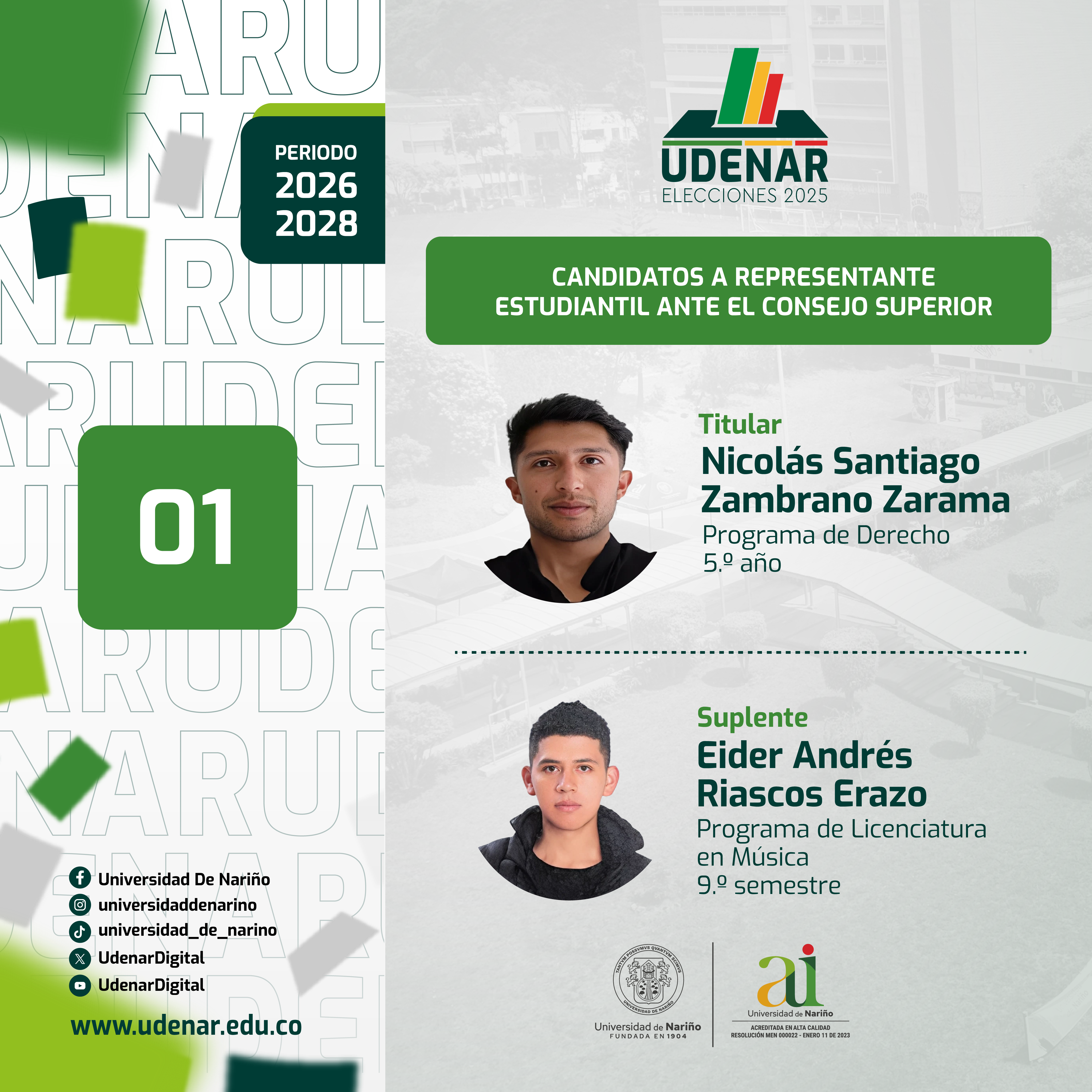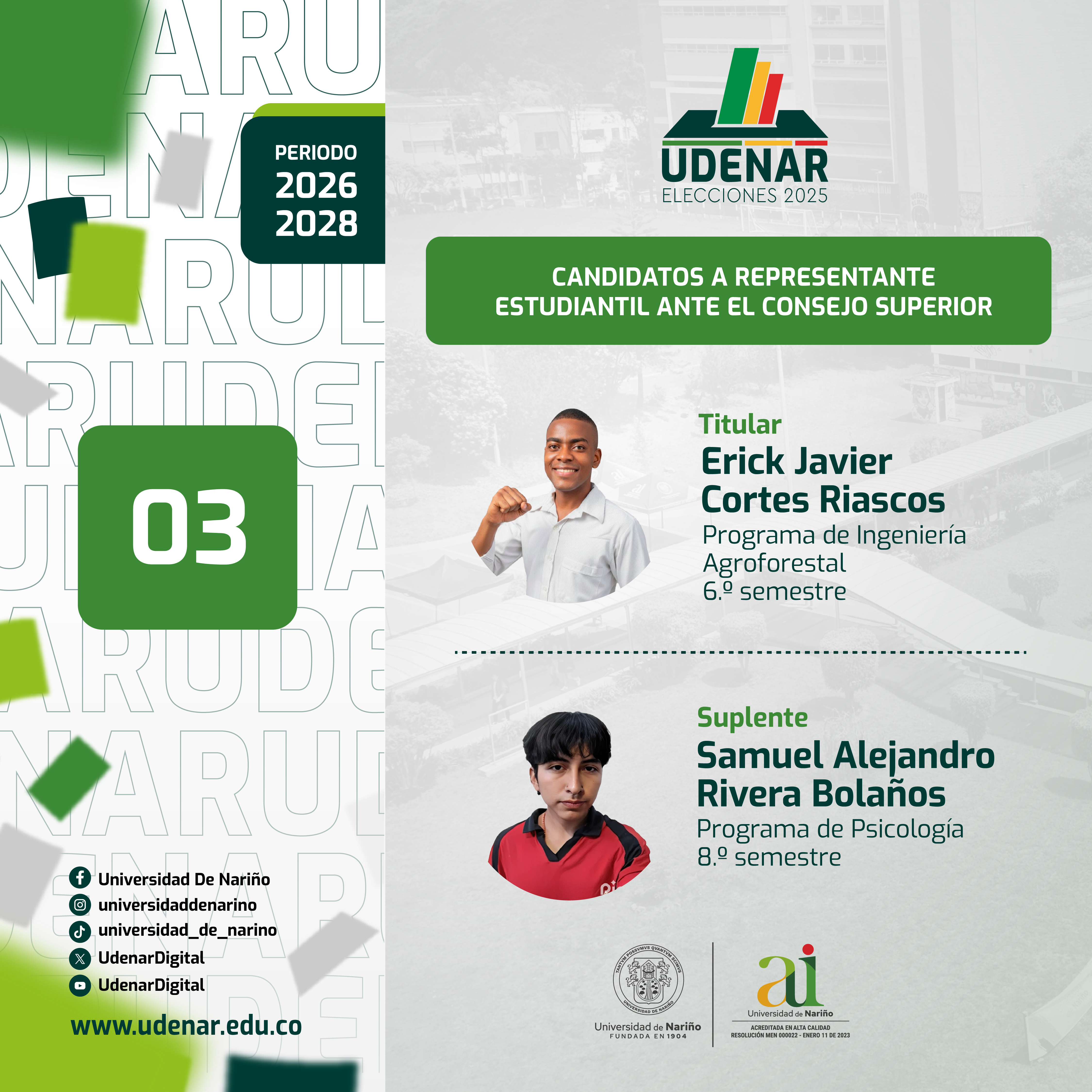 Inicio Sin categoría Candidatos Consejo Superior Universitario Sin categoría Candidatos Consejo Superior Universitario Por Udenar Periódico Principal - 8 octubre, 2025 17 0 Compartir en Facebook Compartir en Twitter CANDIDATOS A REPRESENTANTES ESTUDIANTILES Ante el Consejo Superior Universitario Tarjeton #01 Tarjeton #02 Tarjeton #03 Artículo relacionadosMás del autor Dinámica Demográfica Registro calificado para Maestría en Pedagogía Social FILBO Regional Nariño: Pasto Comentarios de Facebook COLUMNISTASUdenar Periódico1498 MENSAJES0 Comentarioshttp://periodico.udenar.edu.co/Oficina de Prensa Universidad de Nariño152 MENSAJES0 ComentariosEditorial Universidad de Nariño82 MENSAJES0 Comentarioshttps://editorial.udenar.edu.co/Hilbert Blanco-Álvarez77 MENSAJES0 ComentariosJulián Sabogal Tamayo40 MENSAJES0 ComentariosSonia Patricia Erazo Coral32 MENSAJES0 Comentarioshttps://periodico.udenar.edu.co/Mariano Sierra24 MENSAJES0 ComentariosGerardo León Guerrero Vinueza18 MENSAJES0 ComentariosComisión de equidad de género - Udenar16 MENSAJES0 ComentariosInforme de Gestión UDENAR16 MENSAJES0 ComentariosJesús Alirio Bastidas13 MENSAJES0 ComentariosAlberto Quijano Vodniza12 MENSAJES0 ComentariosJavier Rodrizalez11 MENSAJES0 ComentariosLorena Mesias10 MENSAJES0 ComentariosRicardo Oviedo9 MENSAJES0 ComentariosReforma Universitaria8 MENSAJES0 ComentariosCarlos Ferreyra7 MENSAJES0 ComentariosIvan Felipe Benavides M.7 MENSAJES0 ComentariosUniversidad de Nariño Ipiales7 MENSAJES0 ComentariosRonald A. Fernández Gómez5 MENSAJES0 ComentariosJesús Martínez Betancourt4 MENSAJES0 ComentariosGerardo Mauricio Bravo4 MENSAJES0 ComentariosMario Mejía1 MENSAJES0 ComentariosTecnología en Promoción de la Salud0 MENSAJES0 Comentarios